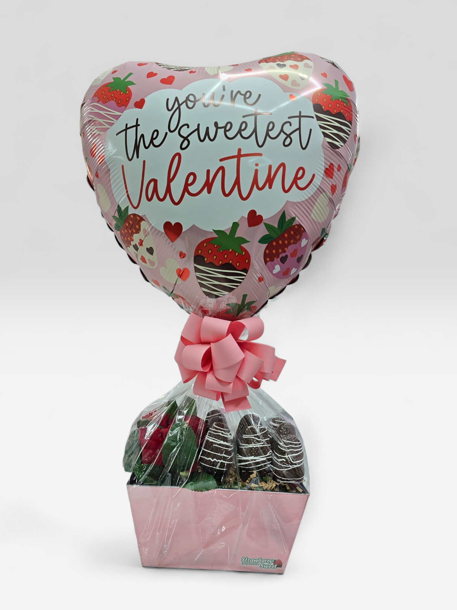 Un arreglo encantador que combina la dulzura de exquisitas fresas cubiertas de chocolate con la belleza clásica de rosas frescas y un delicado globo con mensaje de San Valentín. Diseñado para celebrar el amor en su forma más pura, Sweetest Valentine es el detalle ideal para sorprender, emocionar y decir “te amo” de la manera más dulce y memorable. Romance