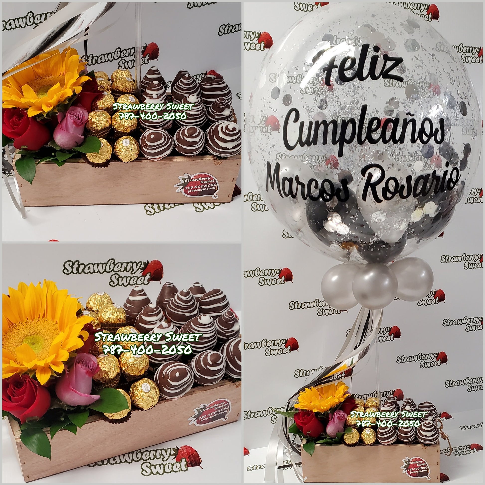 - Cantidad (tamaño) de fresas varia según disponibilidad, colores y estilos de globos pueden variar según disponibilidad