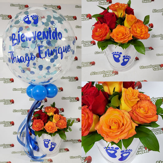 Combo 10 Sunset Rose & Globo Persoanlizado